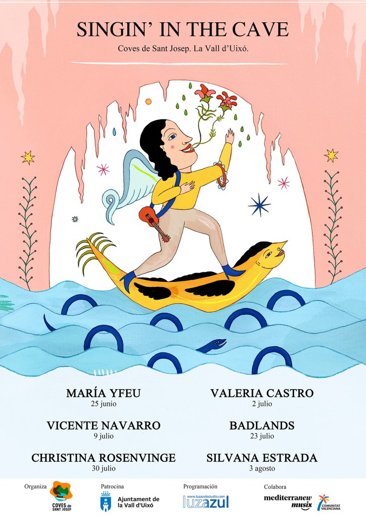 El Singin’ in the Cave anuncia hoy el cartel de la edición de 2021, conformado, por orden cronológico, por María Yfeu (25 de junio), Valeria Castro (2 de julio), Vicente Navarro (9 de julio), Badlands (23 de julio), Christina Rosenvinge (30 de julio) y Silvana Estrada (3 de agosto). Todos ellos se subirán a la barca para cantar, sin amplificación, en la Sala de los Murciélagos de les Coves de Sant Josep, en el interior del río subterráneo navegable más largo de Europa. La principal novedad de esta edición es la posibilidad de realizar un segundo pase en dos de los conciertos (Christina Rosenvinge y Silvana Estrada) si se agotan las entradas del primer pase. Con ello, la organización pretende preservar el formato del festival a la vez que abre la opción a que más personas puedan vivir esta experiencia realmente única.